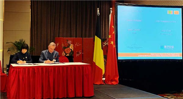 ¡÷±ØÍþÎ÷ººÄ·Áª¹ÙÍøÊ×Ò³Ò©Òµ¸±¶­Ê³¤¼æ¸±×ܲúéÀöƼ(×ó)ÓëV¨¦sale Pharma¹«Ë¾¶­Ê³¤Jehan Lienart(ÓÒ)Ç©ÊðЭÒé