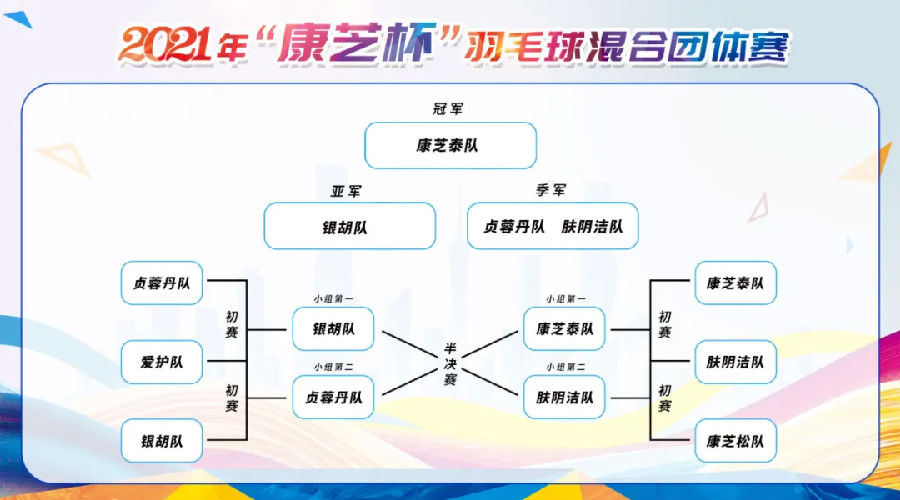 本次角逐共设混双1、男双、混双2三项角逐,,, ,,,均由小组赛及决赛两部分组成 。。 。。。。每项角逐小组赛均接纳随机抽签分组的形式两两对决,,, ,,,按三局两胜制逐轮晋级进入决赛;;;;;;两个小组的第一和第二交织镌汰赛,,, ,,,两支胜队进入总决赛 。。 。。。。经由强烈的角逐,,, ,,,角逐圆满落下帷幕 。。 。。。。最终,,, ,,,必威西汉姆联官网首页泰队夺得冠军,,, ,,,银胡队获得亚军,,, ,,,肤阴洁队、贞蓉丹队并列获得第三 。。 。。。。